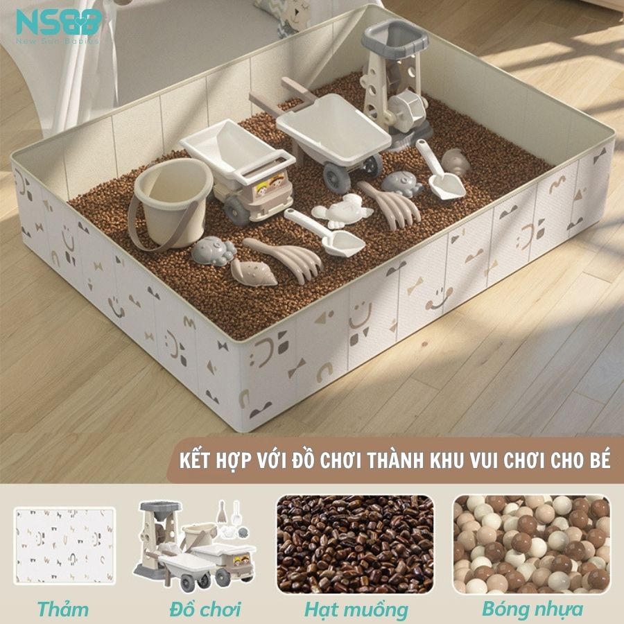 - Để tăng thêm sự thú vị, ba mẹ có thể mua thêm bóng hoặc hạt muồng, đồ chơi xúc cát cho bé.
