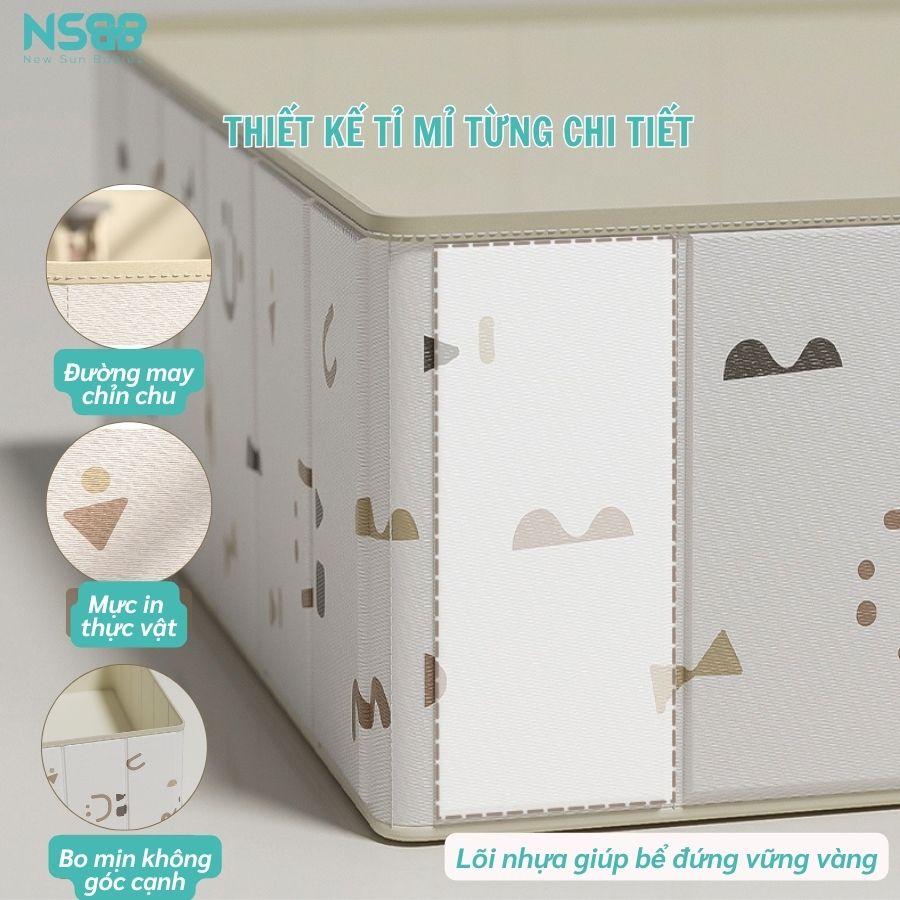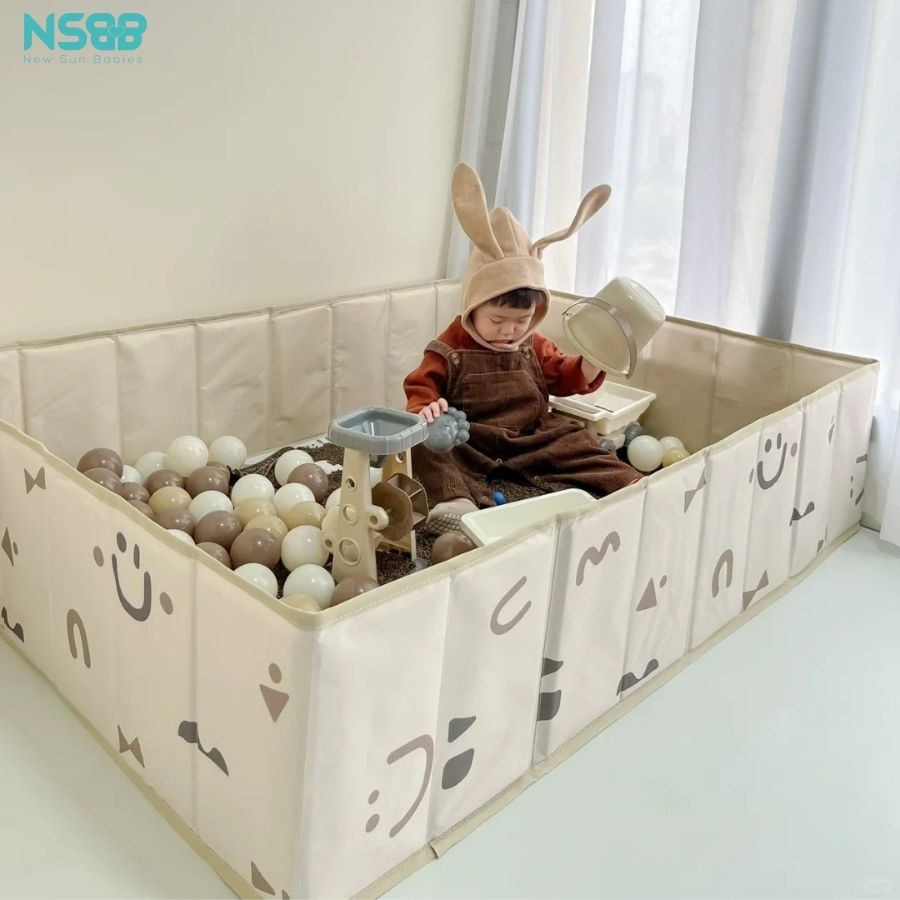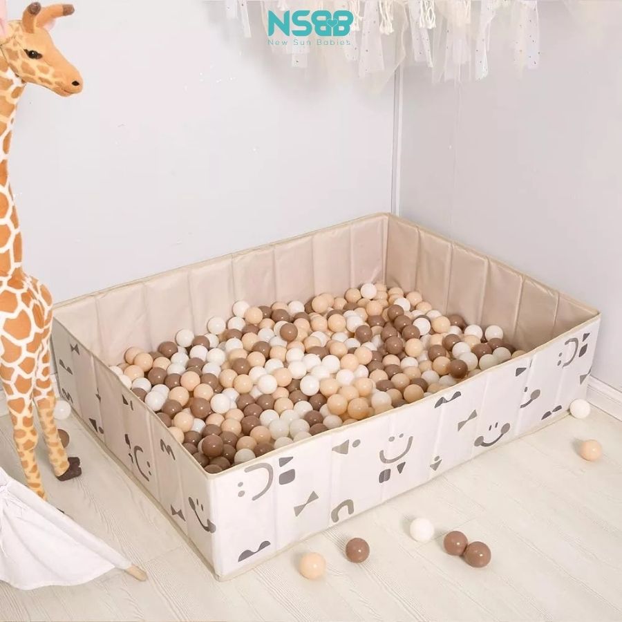 - Bể bóng màu be nhã nhặn và sang trọng theo style Hàn quốc, phù hợp với cả bé trai và bé gái, có thiết kế dạng hình chữ nhật lạ mắt, vuông vắn góc cạnh nên dễ dàng bố trí ở nhiều không gian trong nhà mà không gây tốn diện tích.