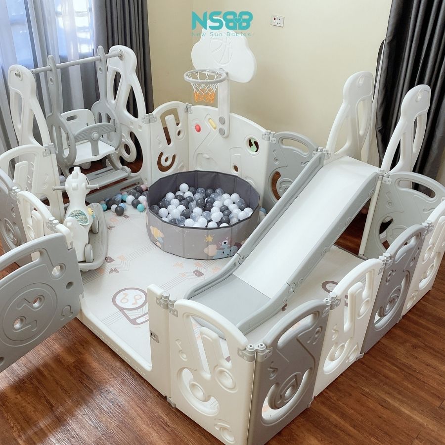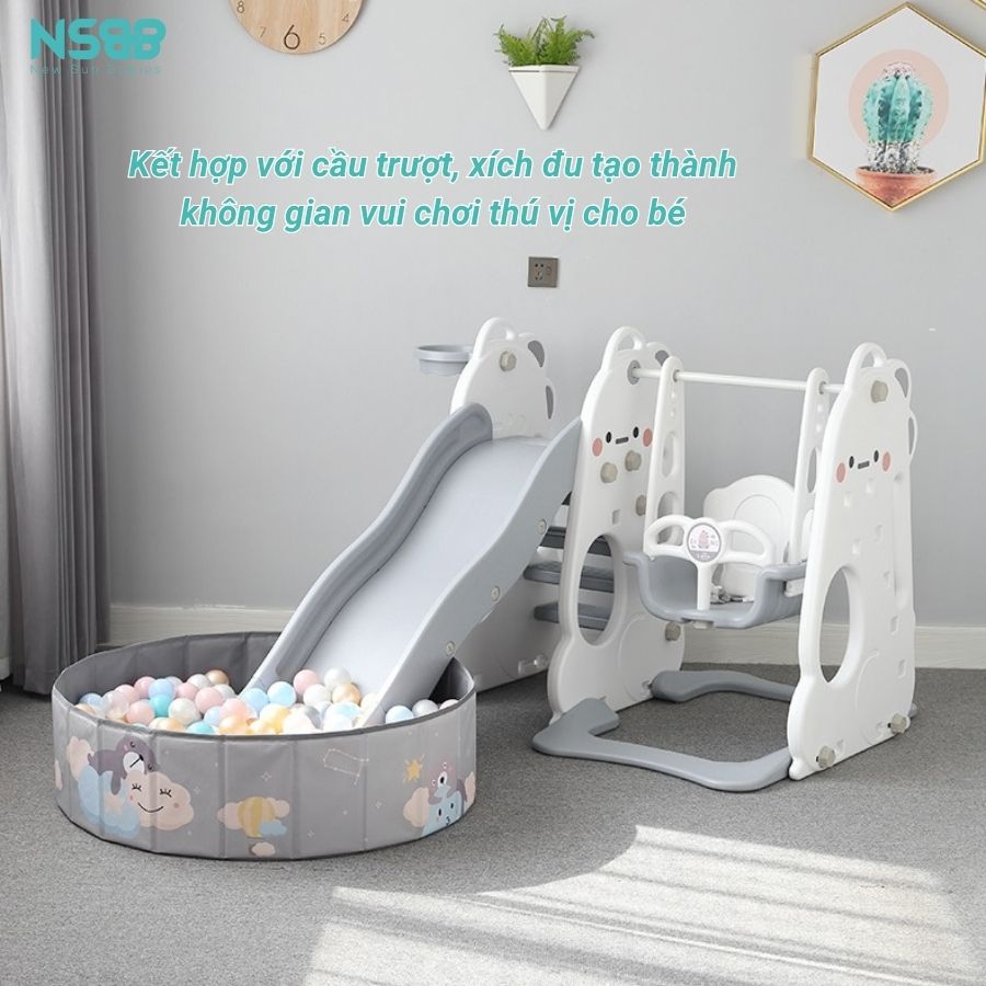- Có thể kết hợp cùng các món đồ chơi khác như cầu trượt, quây cũi để bé có một “khu vui chơi thu nhỏ” tại nhà, giúp hạn chế việc tiếp xúc với tivi, điện thoại.