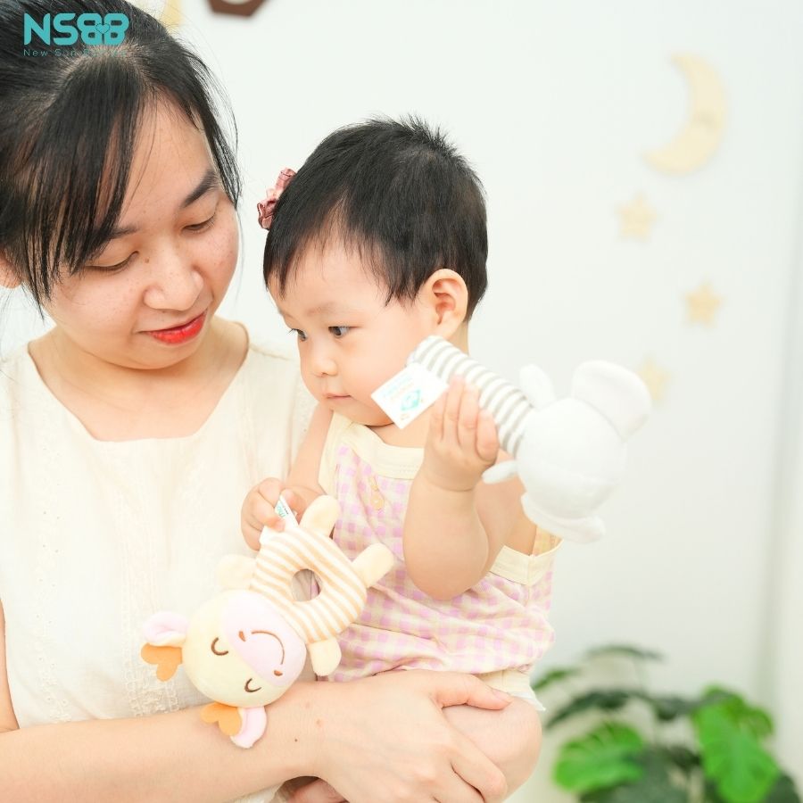 Đồ chơi cầm tay được làm từ vải 100% Polyester cao cấp mịn màng, thoáng khí, không gây kích ứng, nhẹ nhàng như vòng tay mẹ ôm ấp làn da mỏng manh của bé.