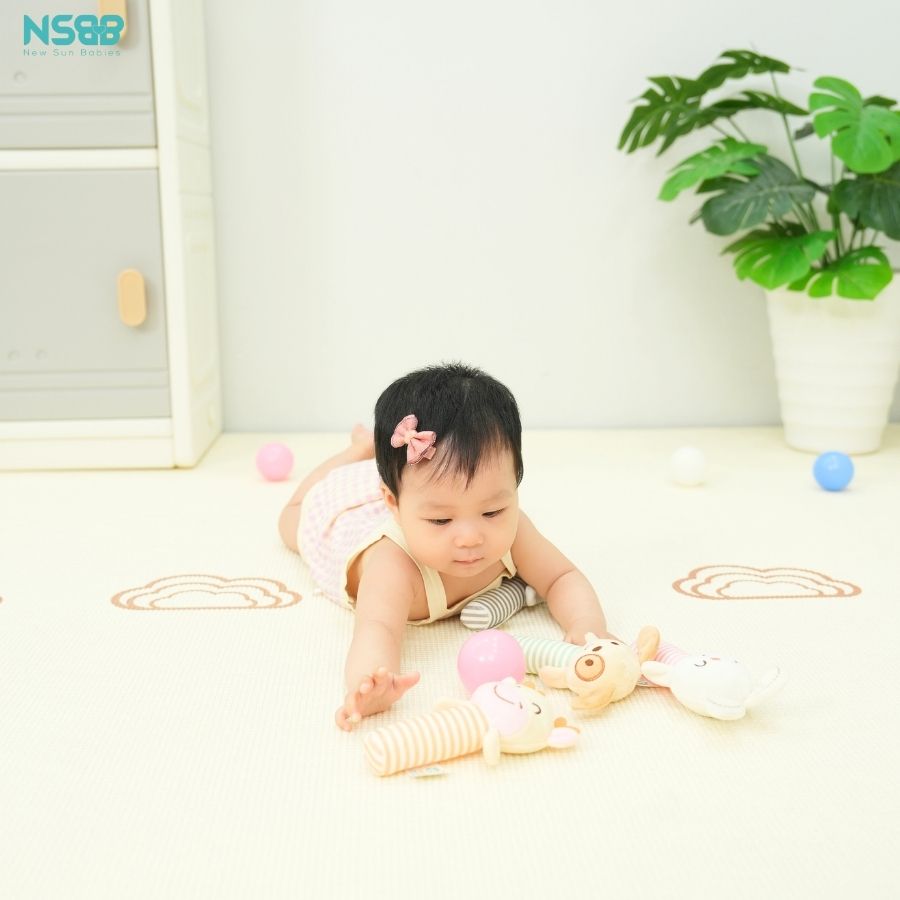 + Crinkle paper: Giấy kêu sột soạt khi bóp thu hút sự chú ý, giúp bé khám phá âm thanh.