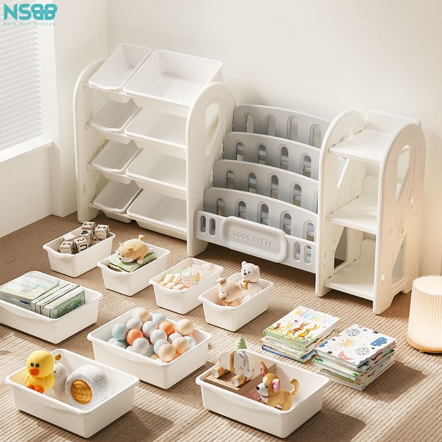 - Thiết kế nhiều ngăn chứa rộng rãi, phù hợp để đựng sách, đồ chơi, quần áo, bỉm sữa, đồ dùng học tập…