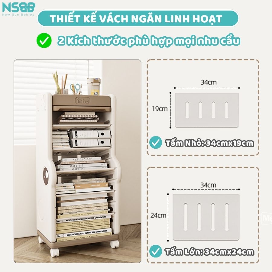 - Phân loại thông minh: Ngăn chứa được phân vùng 2 kích thước (19cm và 24cm), phù hợp với đa dạng đồ dùng như sách, tranh, đồ ăn nhẹ, dụng cụ học tập.