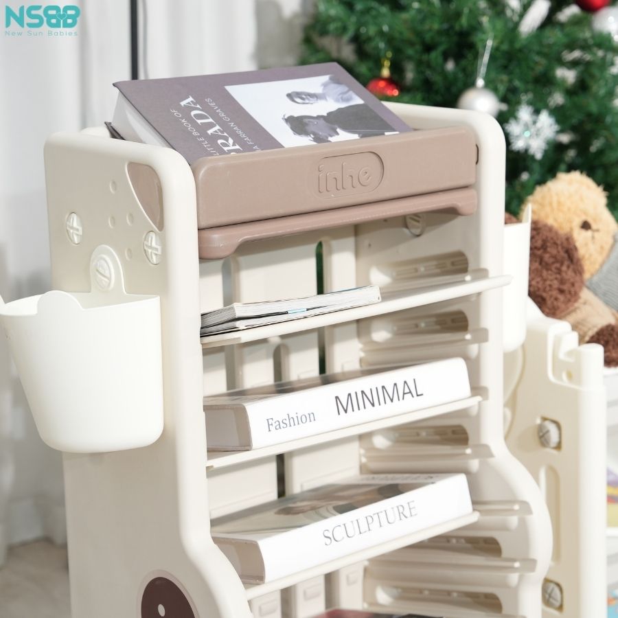 - Kệ sách cho bé có ngăn chứa sâu và rộng: Dễ dàng lưu trữ các đồ dùng lớn, tận dụng tối đa không gian sử dụng.
