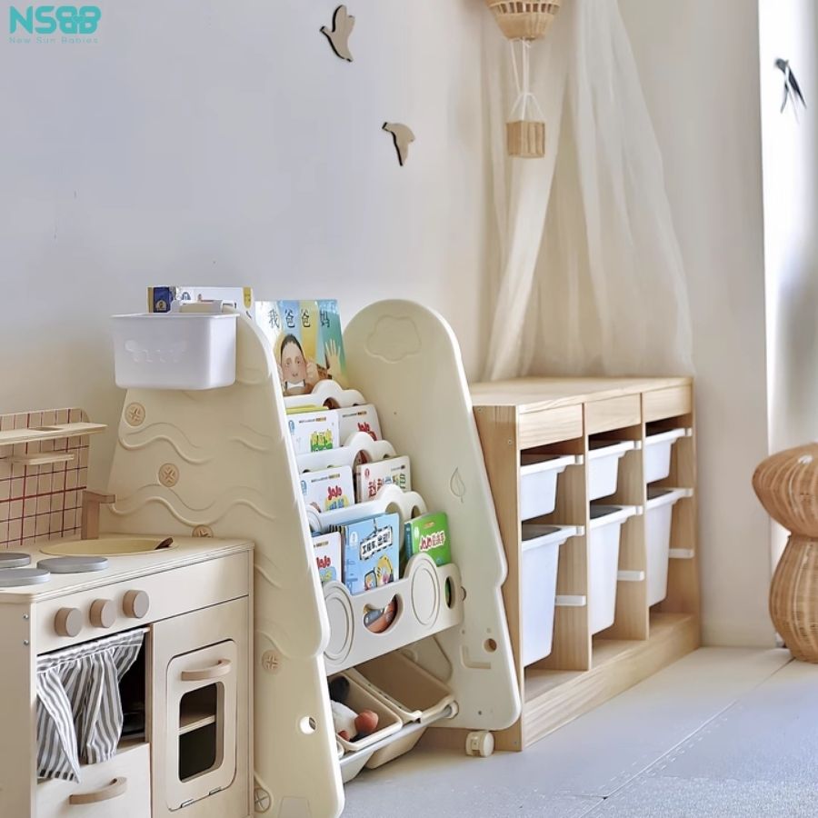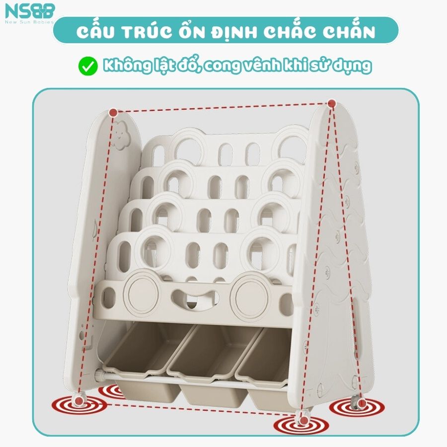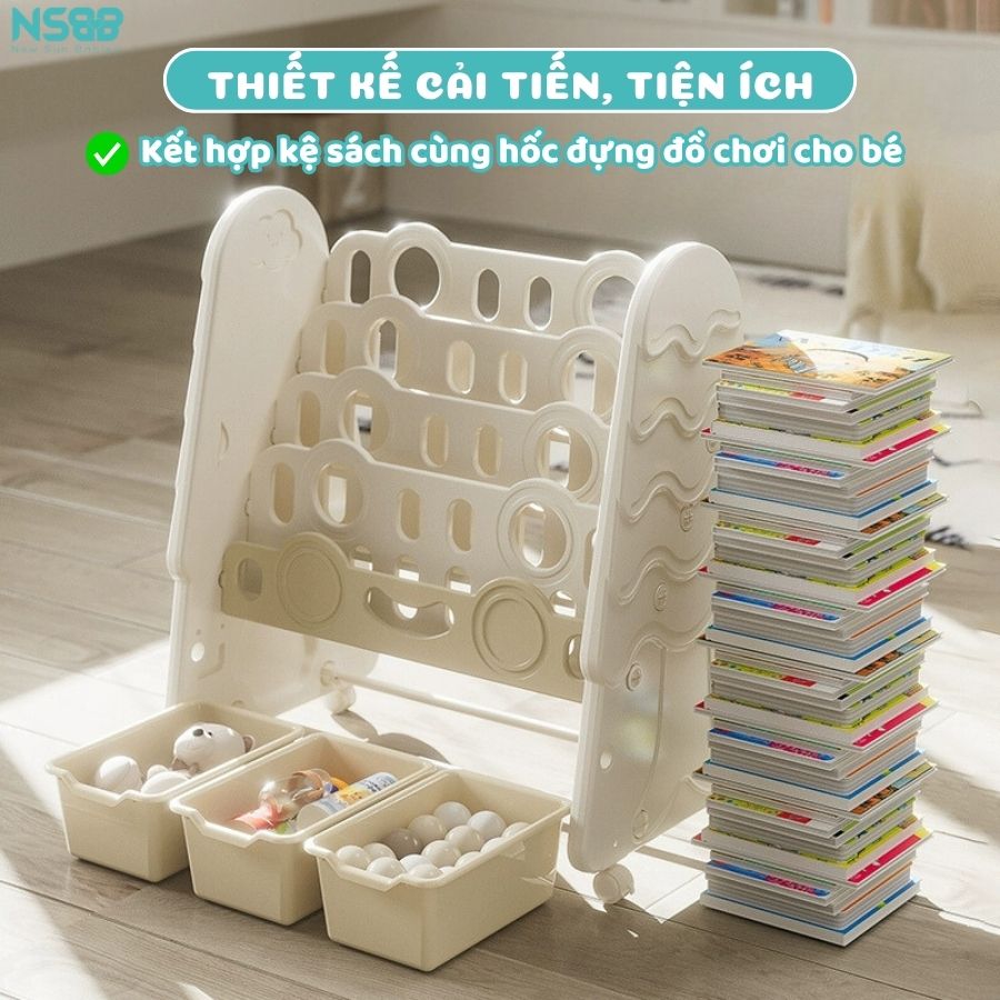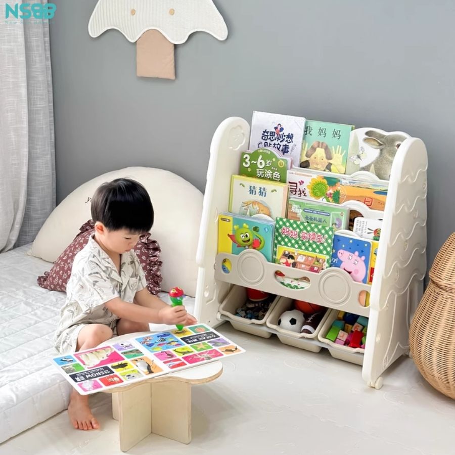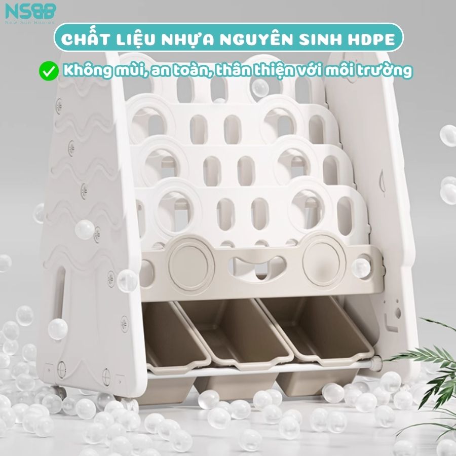 - Kệ sách cho bé được làm từ nhựa HDPE nguyên sinh cao cấp, không chứa chất độc hại, an toàn tuyệt đối cho trẻ nhỏ.