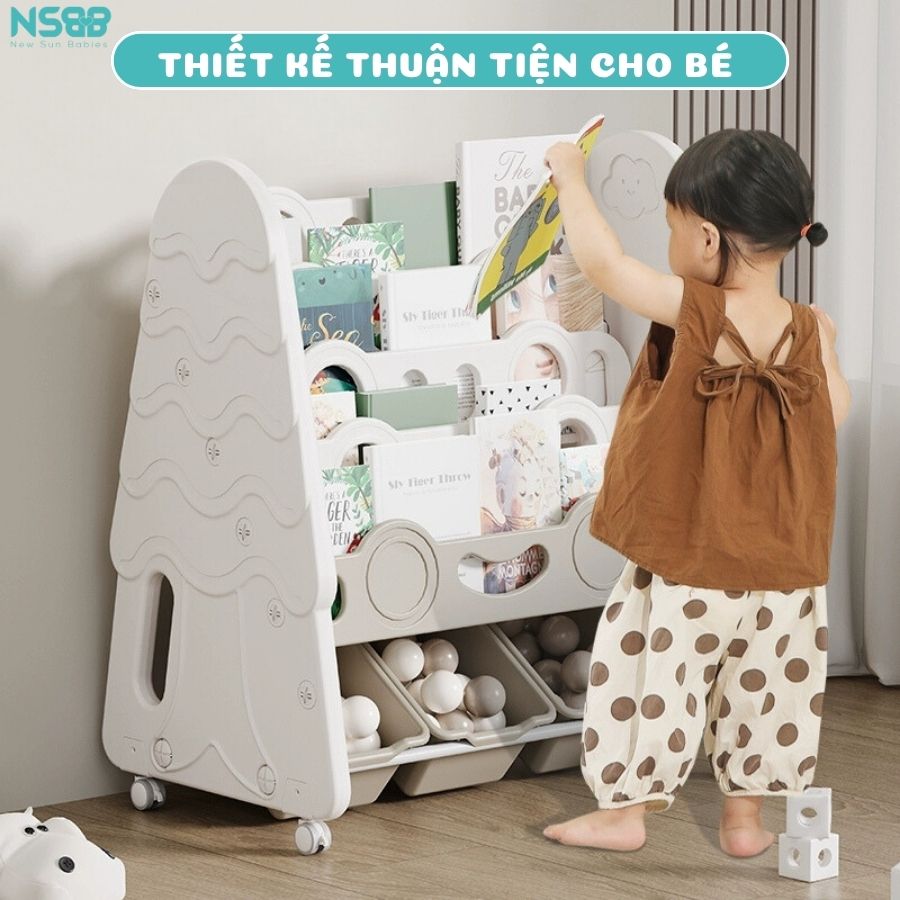 - Thiết kế sinh động, họa tiết cây thông hai bên giúp tạo điểm nhấn nổi bật, kích thích thị giác và sự hứng thú của bé với việc đọc sách, học tập và sắp xếp đồ dùng.