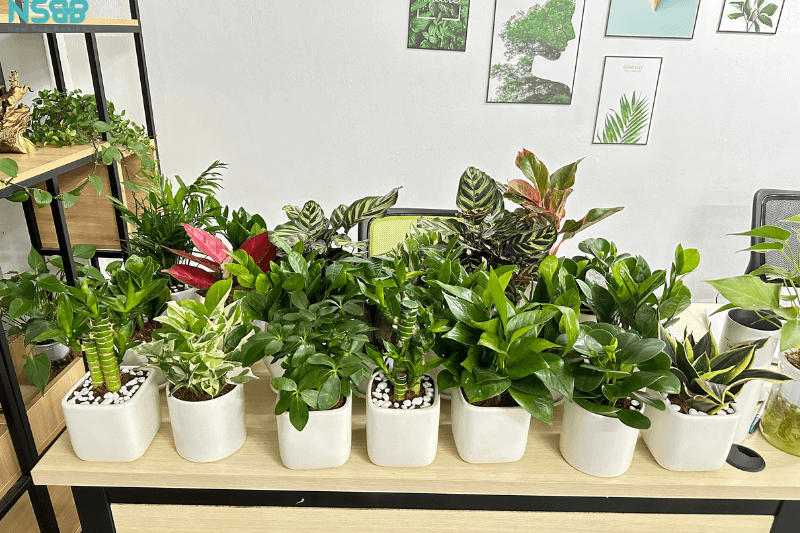 Không gian của phòng họp được trang trí thêm phần xanh với những chậu cây nhỏ xinh