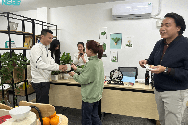 Mỗi nhân viên nữ tại công ty được trao tặng những phần quà đầy ý nghĩa bao gồm chậu cây xanh kèm tấm thiếp chúc mừng. Từng phần quà không chỉ được chuẩn bị hết sức chu đáo mà còn là lời chúc đến từ phái nam trong công ty. Bên cạnh đó, buổi tiệc liên hoan diễn ra mang đến cơ hội để cùng tôn vinh và tri ân những đóng góp và nỗ lực không ngừng nghỉ của các nhân viên nữ trong công ty.