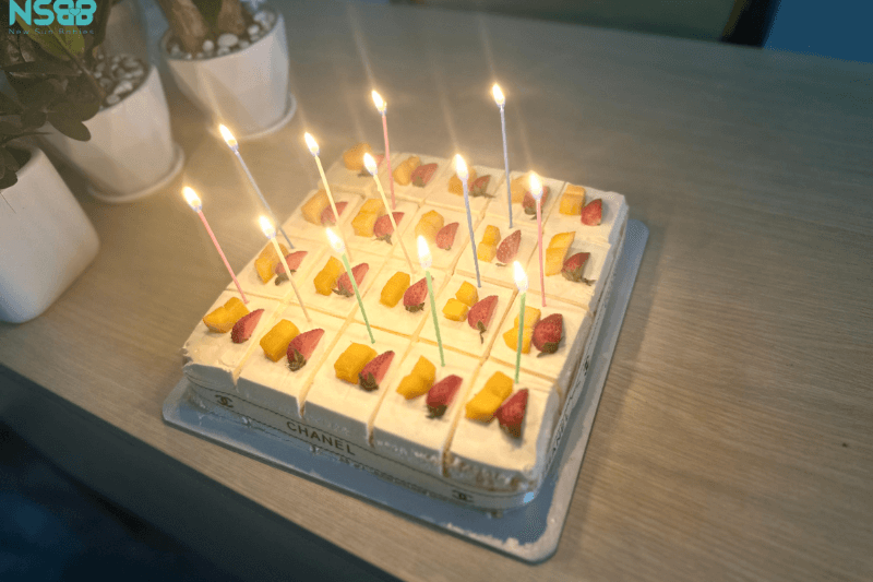 Các nhân viên đã cùng nhau thưởng thức những chiếc bánh ngọt và đồ uống thơm ngon, trong không gian đầy âm nhạc vui tươi và tiếng cười phấn khích