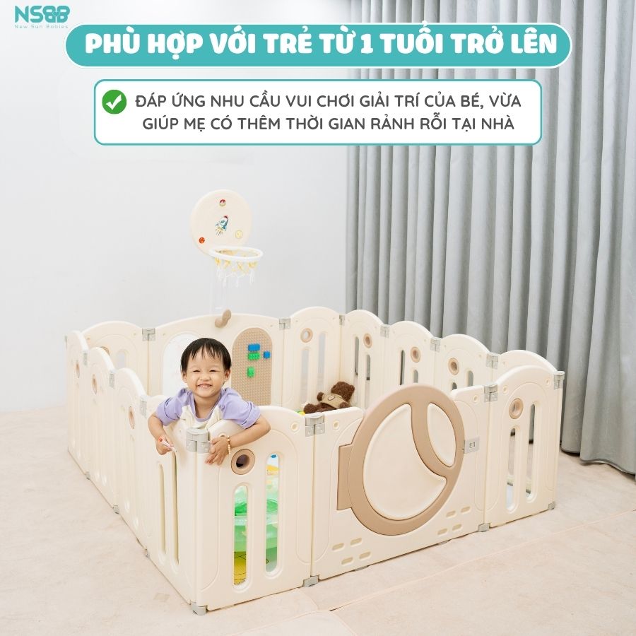 - Với chiều cao 63cm và độ dày 3cm quây đảm bảo an toàn cho bé tập bám, vịn, đi, chơi thoải mái trong không gian riêng.