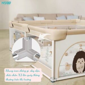 Quây bóng vải khung inox dày dặn, chắc chắn, phù hợp sử dụng cho các bé từ 1- 4 tuổi. Chất liệu vải lưới thoáng khí dùng được cả 4 mùa mà không lo nóng hay bí bách.