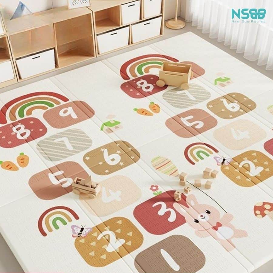 - Thảm cho bé được thiết kế với cấu tạo 3 lớp bền chắc, mang lại sự an tâm tối đa cho bố mẹ và trải nghiệm thoải mái cho bé