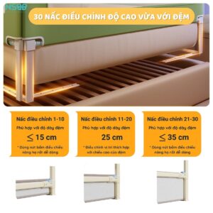 ✔️ 30 nấc điều chỉnh độ cao (đệm <35cm)