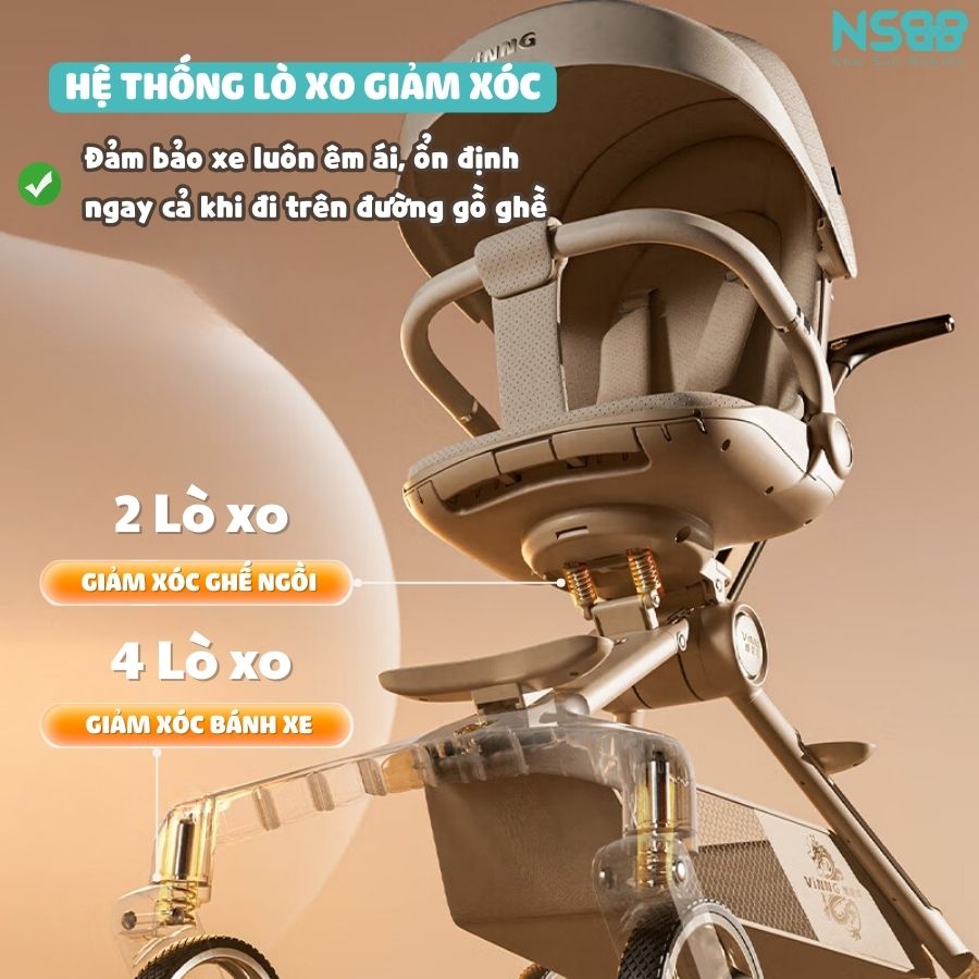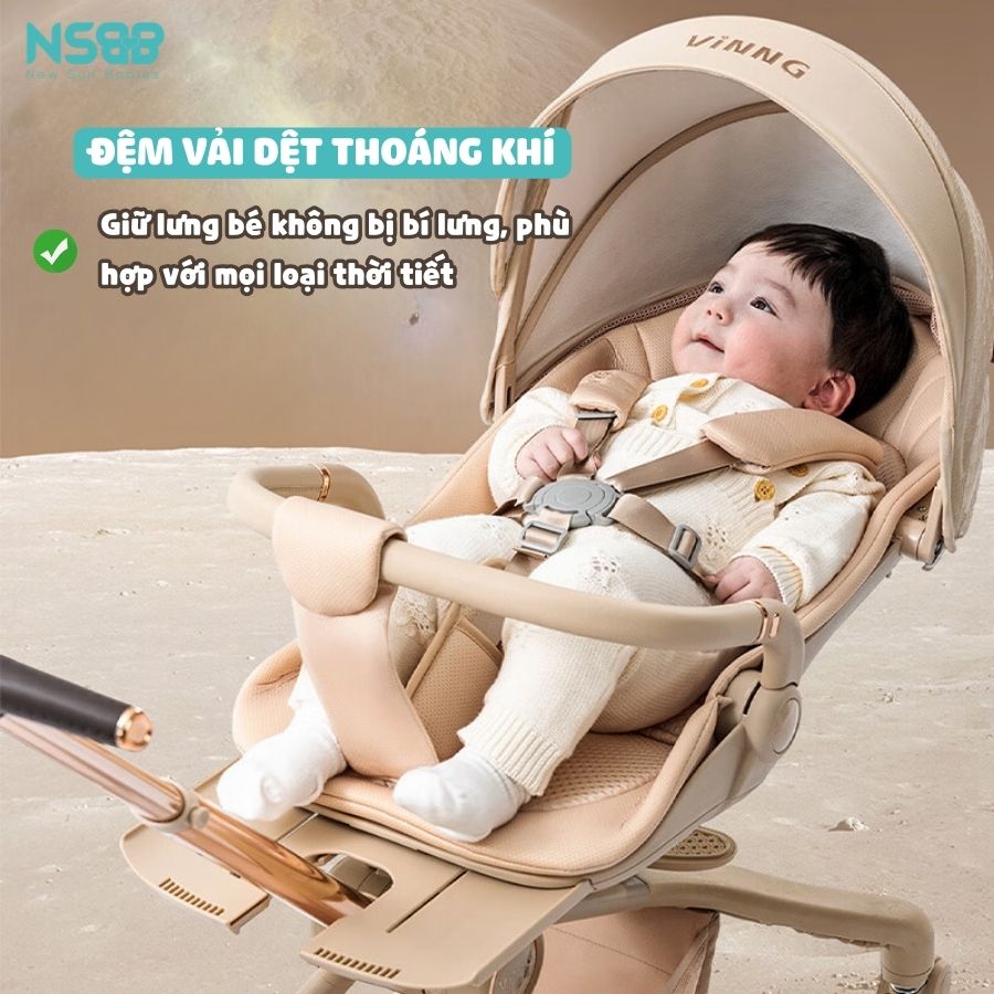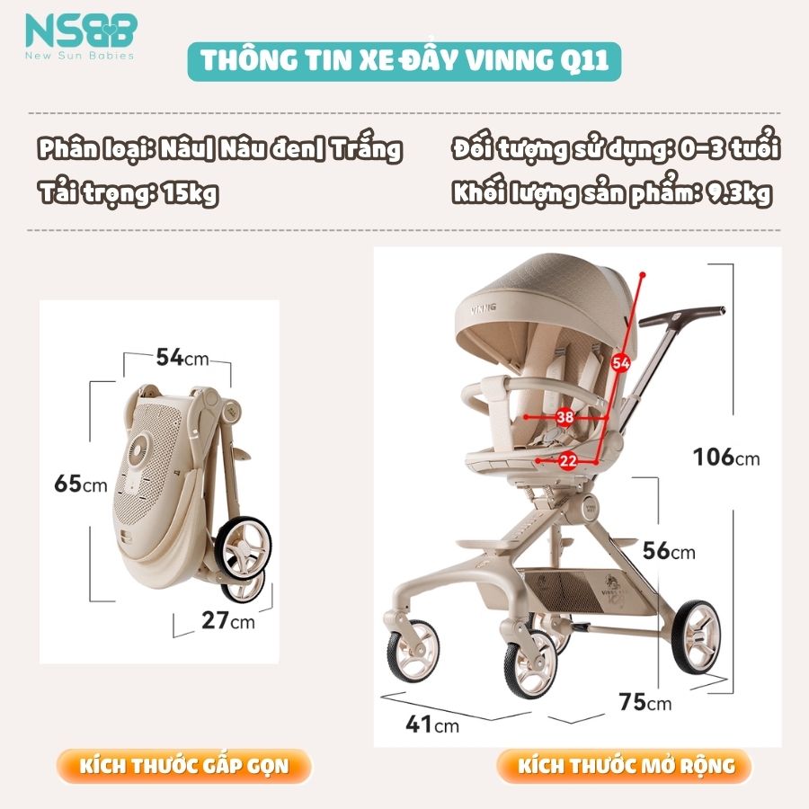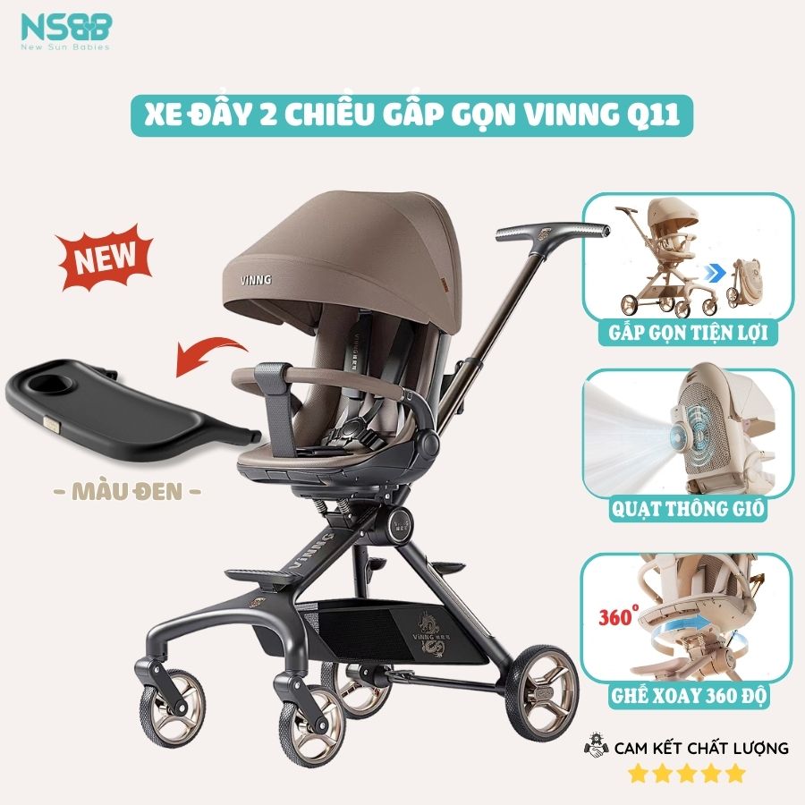 Xe đẩy gấp gọn 2 chiều Vinng Q11 cao cấp là phiên bản quốc tế mới nhất năm 2025, được thiết kế dành cho gia đình hiện đại. Sản phẩm gây ấn tượng với kiểu dáng sang trọng, thanh lịch cùng khả năng đảo chiều linh hoạt, giúp ba mẹ dễ dàng quan sát và tương tác với bé. Đặc biệt, hệ thống quạt làm mát 3 chế độ thông minh mang đến sự thoải mái tối đa cho bé trong mọi điều kiện thời tiết.