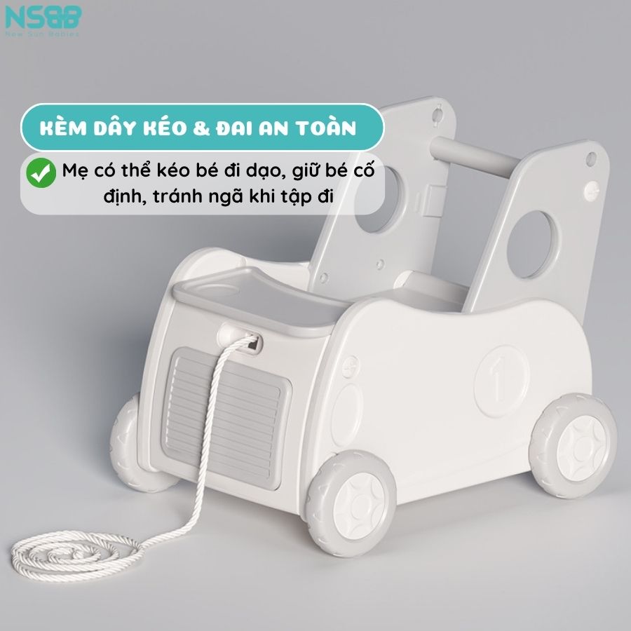 - Thiết kế linh hoạt, cho phép bé vừa tập đi, vừa ngồi chơi hoặc ăn dặm, mang đến những trải nghiệm vui vẻ và thoải mái.